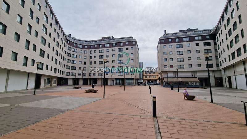 Está en un edificio construido en 2010 que hace una plaza en su interior a la que da toda la fachada de la entrada. Un 30% de la entreplanta tiene ventanas por 3 de sus paredes teniendo vistas a la Plaza de Tranvías y a la Estrada de Castilla lo que le aporta gran luminosidad y visibilidad.