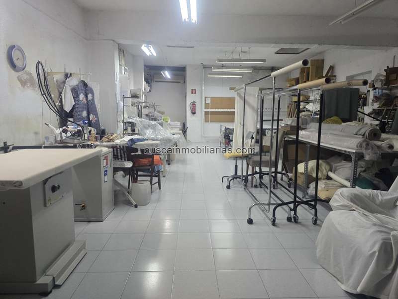Con Varias maquinas de coser, cortadora de tela, estanterías, planchadora.