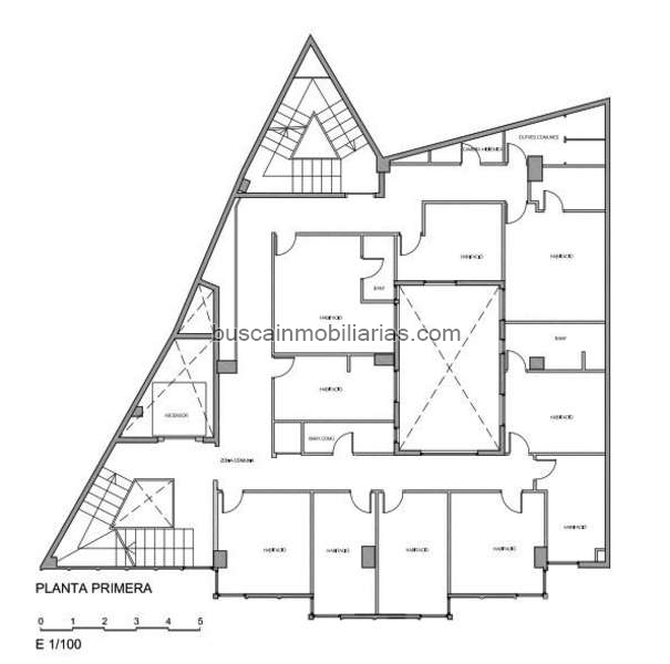 Entresuelo (197 m2): 3 habitaciones dobles + baño, 6 simples, 2 baños