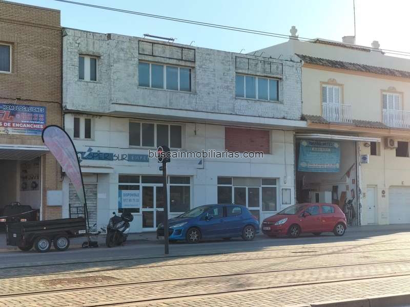 Nave almacén en plantaba baja y entreplanta de un edificio compuesto de tres plantas sobre rasante en el municipio de Chiclana de la Frontera, en la provincia de Cádiz. El inmueble tiene una superficie construida de 450,80 m2 de los que 225,40 corresponden a la planta baja y 225,40 m2 a la entre planta. La planta baja tiene dos zonas dedicadas al espacio del público, dos despachos, un aseo y la escalera de acceso a la primera planta la cual está dividida en varias estancias para oficinas y almacenaje. El local se encuentra listo para montar cualquier tipo de negocio teniendo muchas posibilidades de explotación. Dispone de servicios de luz, agua, instalación de aire acondicionado y salida de humos. Situado en la antigua N-340 en su salida hacia Algeciras, junto al pabellón Ciudad de Chiclana y cercano al Puente de la Concordia. Al ser de procedencia bancaria está libre de comisiones inmobiliarias.