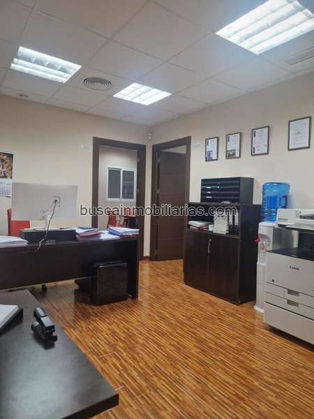 En la primera planta nos encontramos con las oficinas, despacho, sala de reuniones, habitación pequeña para almacenamiento y dos aseos. Con suelo de parqué, puertas en nogal y aire acondicionado centralizado.