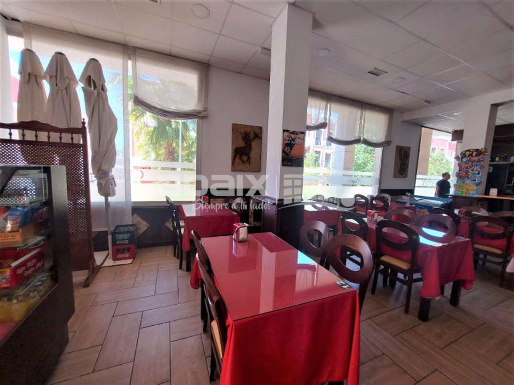 Al fondo del local se encuentra una barra de madera con una pared totalmente revestida de madera con apliques de luz decorativos, lo que le da un toque cálido y acogedor al ambiente. La cocina está instalada y totalmente equipada, con dos puertas, una de ellas conecta con la barra y otra conecta con el salón, lo que facilita la atención a los clientes. Además, tiene 2 terrazas.
