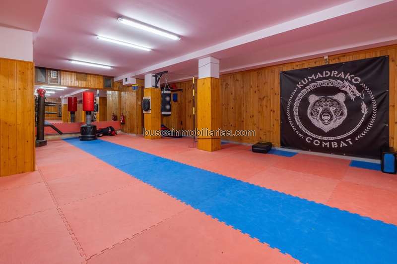 Durante años ha funcionado como gimnasio y centro de artes marciales, y eso se nota en la distribución. La zona principal es una gran sala diáfana con tatami, amplia y despejada, perfecta para entrenamiento, clases colectivas, yoga, pilates, defensa personal o cualquier actividad deportiva.