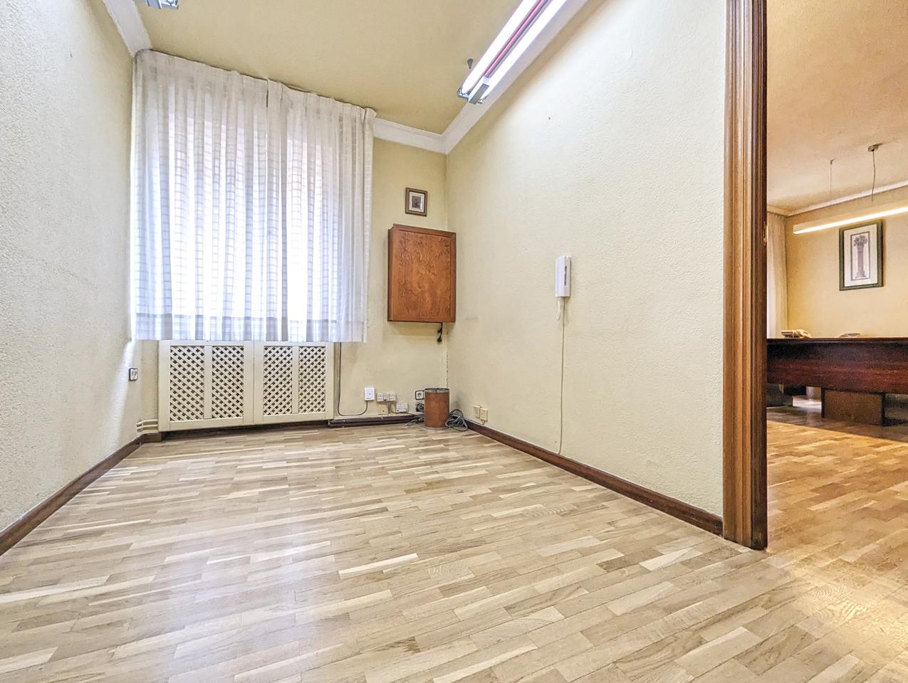 Distribuida en 2 despachos (uno de ellos con AMPLIO FRENTE DE ARMARIO EMPOTRADO muy práctico para usar con ARCHIVO), sala de reuniones, sala de espera, espacioso hall y aseo con ventana.