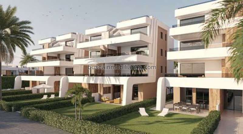Descripción del objeto: Apartamentos bajos que constan de una superficie construida de unas 106 m² - 114 m² (incluyendo terrazas) con 3 dormitorios, 2 baños (1 en-suite), 1 salón / comedor con cocina moderna y 1 porche (a unos 9 m² - 17 m²). Los jardines privados tienen unos 71 m² - 82 m². En esta urbanización se construyen apartamentos de lujo con maravillosas vistas a las montañas. Los apartamentos se distribuyen entre planta baja, primera, segunda y tercera, con 2 apartamentos por planta y ascensor para pasar de unas a otras. Cuentan con varias piscinas comunitarias, aparcamiento en superficie para cada vivienda, trastero y terraza con cocina de verano. Las viviendas de planta alta tienen solárium. Los apartamentos de planta baja tienen 3 dormitorios y 2 baños completos y el resto de las viviendas, 2 dormitorios y 2 baños completos también. Las viviendas han sido diseñadas con un estilo contemporáneo y un concepto de vivienda abierta, que se compone de una cocina amueblada y un salón-comedor. Equipamiento adicional: La vivienda posee los estándares de calidad más altos y está equipada con: - Piscinas comunitarias con amplias zonas verdes. - Cocina completamente amueblada y equipada con horno y microondas elevados y en columna, lavavajillas y frigorífico integrado, placa de inducción y campana extractora. - Iluminación: dentro de la vivienda así como en áreas exteriores. - Armarios forrados con cajoneras y baldas. - Baños completamente equipados con mueble, lavabo, espejo, váter suspendido, ducha empotrada y mamparas de cristal. - Preinstalación de aire acondicionado por conductos. - Cocina de verano en terrazas. - Solárium en plantas altas. - Plaza de aparcamiento en superficie con trastero. - Ascensor (desde planta baja hasta planta tercera Ubicación de casa/solar: Estos apartamentos están a dos pasos del centro comercial principal del complejo de golf, con supermercado, bares y restaurantes, etc. También hay una línea de autobús al nuevo aeropuerto de Murcia y a las increíbles playas de Mazarrón. Condado de Alhama - Alhama Signature está considerado uno de los mejores campos de golf de España. Un campo de gran longitud y espectacularidad, con 5 grandes lagos, 116 bunkers con formas muy peculiares y variadas, originales tees circulares, calles amplias y greenes rápidos. Todo un campazo de primera categoría. La Región de Murcia dispone de 73 km de costas con unas playas realmente maravillosas a lo largo de su recorrido costero. Murcia tiene un total de 192 playas, cuenta con excelentes playas de arena fina así como de aguas cálidas y poco profundas, donde podrás bañarte, tomar el sol, navegar por sus aguas, realizar deporte acuáticos como: submarino, esnorkel, pesca, surf, etc. La Región de Murcia no solo puede presumir de su diversidad cultural, también puede hacerlo de su riqueza natural, con espacios naturales y rincones de interés tanto en el litoral como en el interior. Otros: Calificación energética está pendiente.