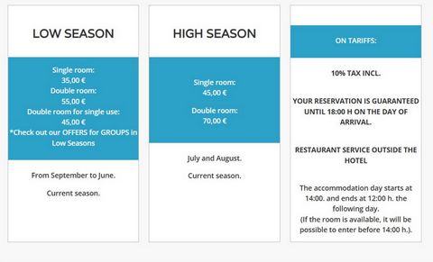 The hotel has a restaurant (external service of the hotel) and has 16 rooms spread over two floors, which gives it a cosy and homely atmosphere. It has 10 exterior double rooms (8 of which have sea views and en-suite bathrooms with walk-in showers) and 6 single rooms.