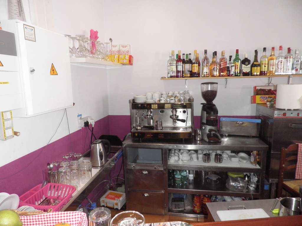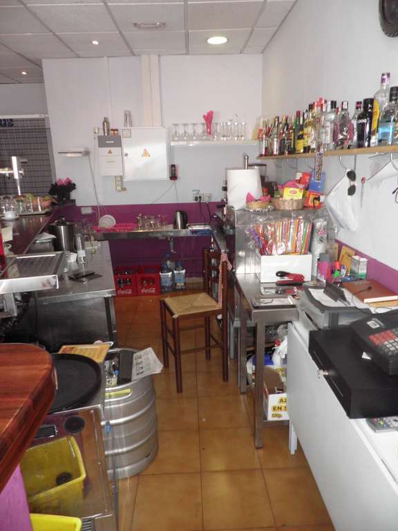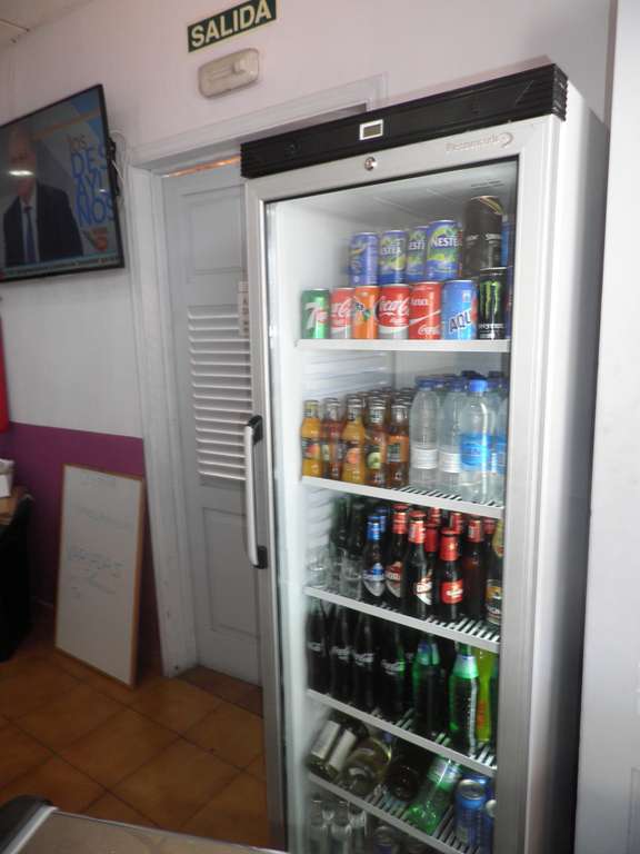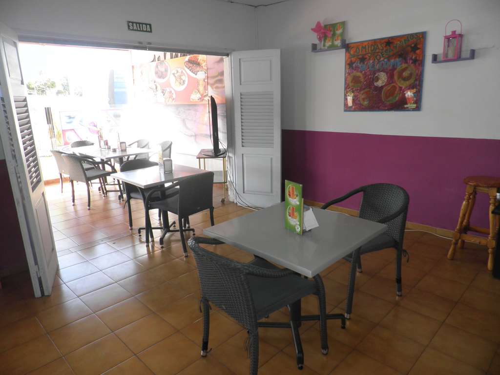 El comedor cuenta con 8 mesas seis de ellas en la terraza, 30 sillas y cuatro butacas en la barrabar. También en el comedor hay 2 neveras de exposición, y un mural alto de bebidas. La zona bar también cuenta con nevera y maquina de café y expositor de bebidas. La maquina registradora y el televisor también están incluidos.