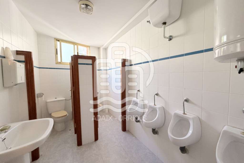 Dispone de un baño y dos aseos, además de varias estancias distribuidas en aulas o salas equipadas con mesas, un amplio salón principal y zona de bar. También incluye almacenes, despensa, armarios y trastero, facilitando el almacenamiento y la organización del espacio.