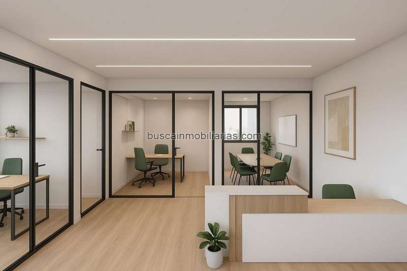 Se trata de un bajo esquinero con 4 ventanales a fachada y un patio de luces interior. Está planteado para distribuirlo en 4 oficinas independientes, una zona común en la entrada a la propiedad, dos baños y con posibilidad de ubicar una cocina junto al patio de luces.