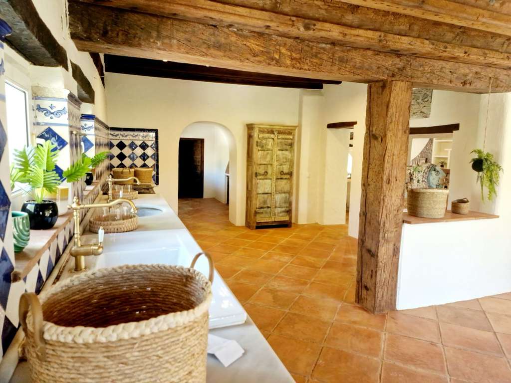 La finca consta de una casa principal con 3 habitaciones y 2 baños,cocina grande abierta,comedor,salon y varios rincones para relajarse,un porche enorme con horno de pan y una zona de barbacoa y piscina.Aparte de la casa principal hay una casita para invitados.Los 18.000m2 del terreno estan totalmente vallados.Hay un establo para 5 caballos.La construcción esta hecha de piedra tradicional y es muy bonita y original.