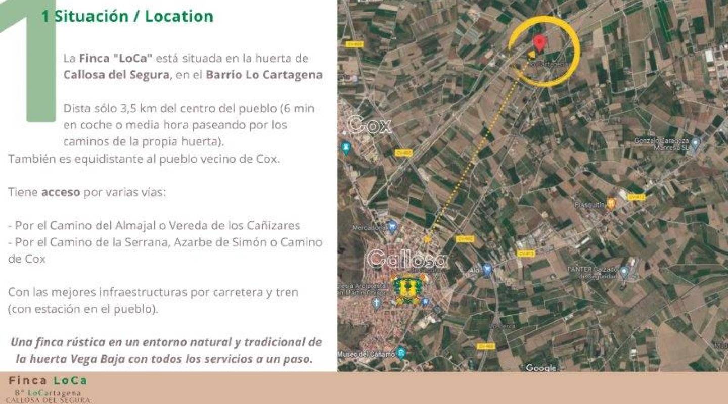 Situada a 3 km del centro de Callosa de Segura y de Cox, con todos los servicios.