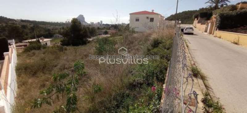 Parcela prácticamente llana de 800 m2, con vistas al mar y Peñón de Ifach, situada a tan solo 2,5 km del centro de Calpe y todos los servicios.