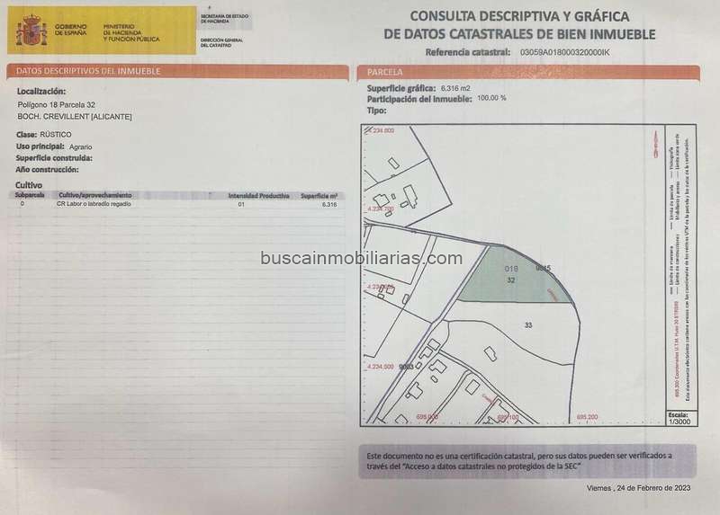 BOCH CREVILLENTE PARCELA RUSTICA DE 11.934 METROS NO SE PUEDE CONSTRUIR