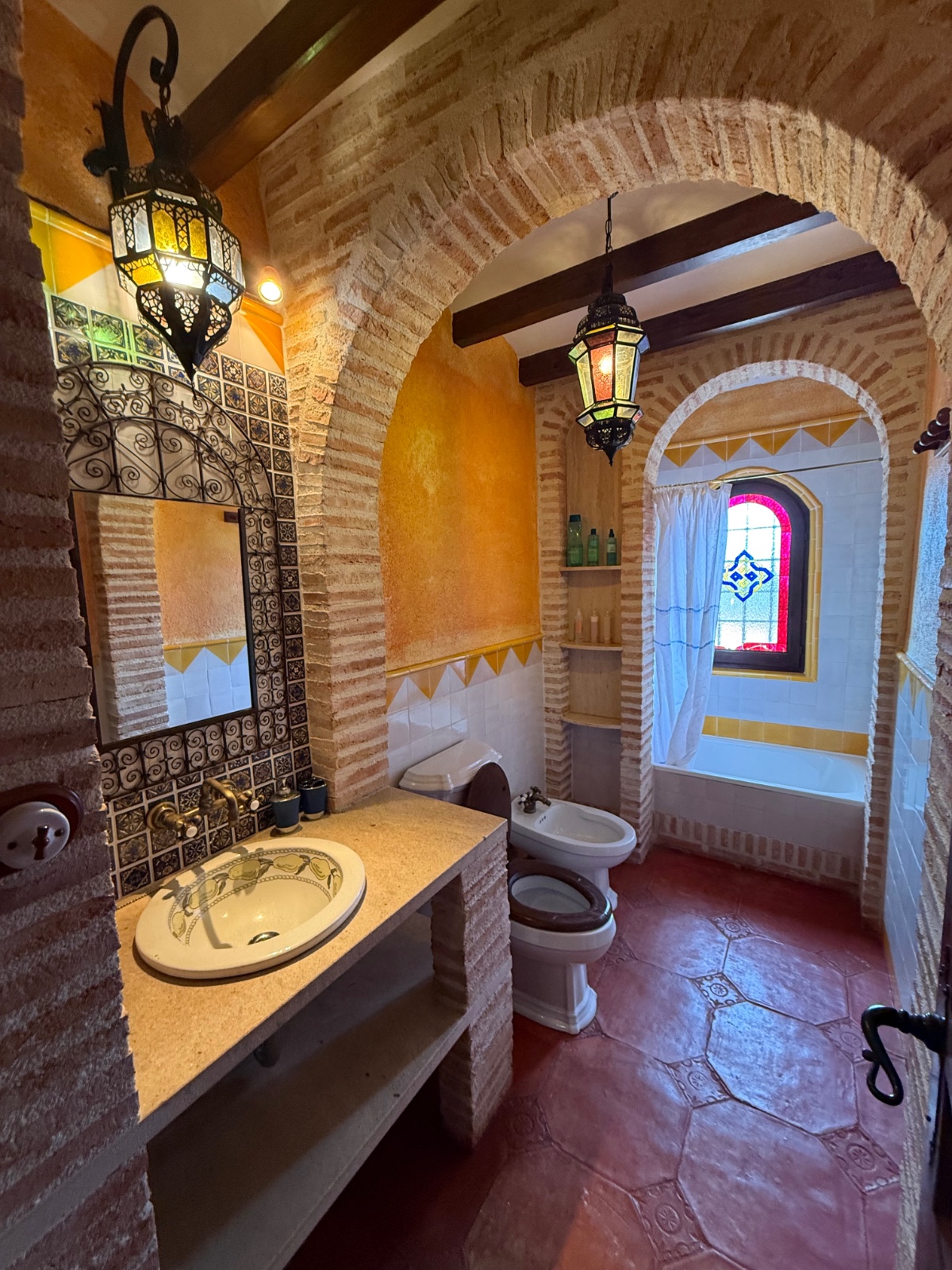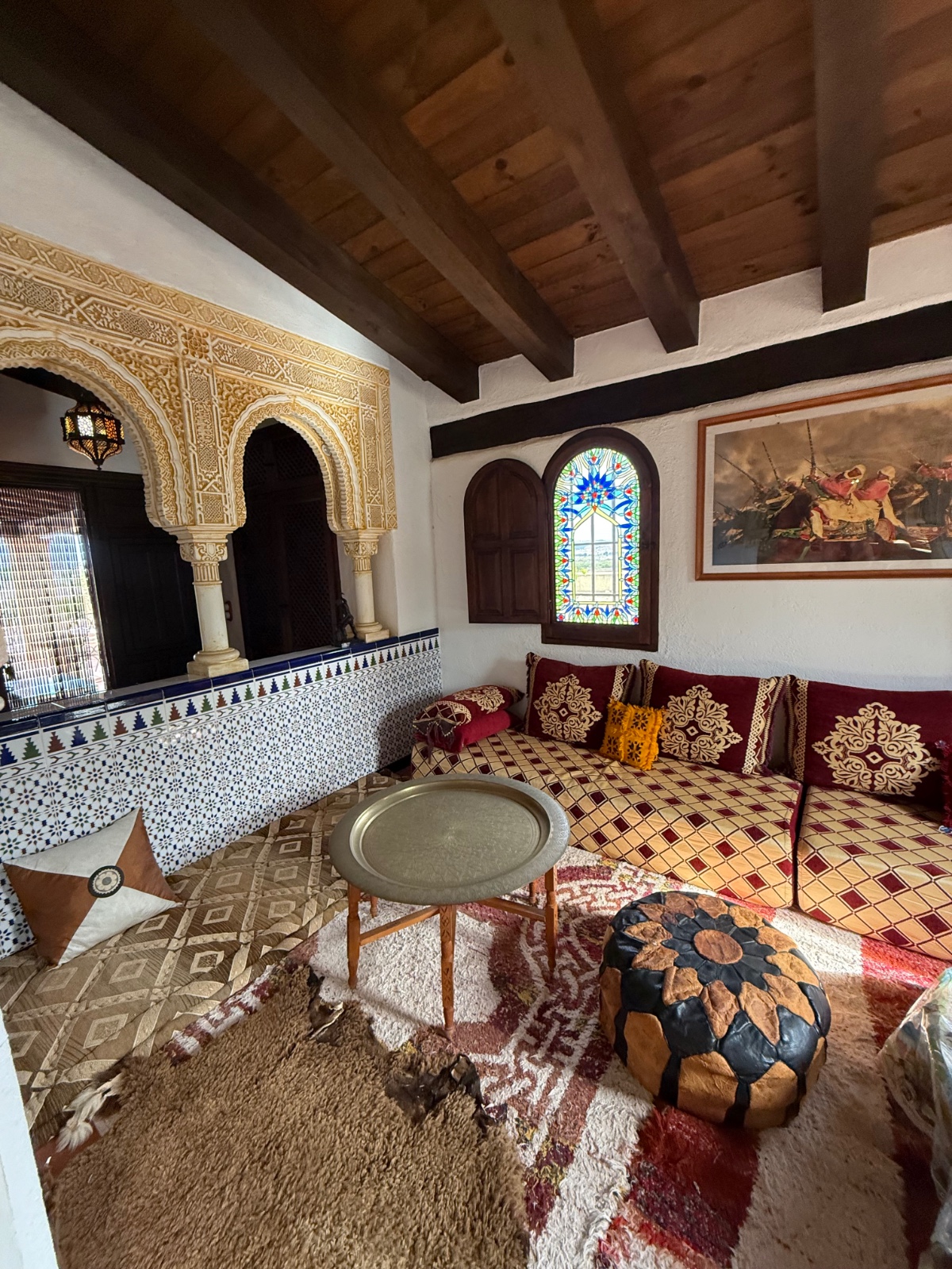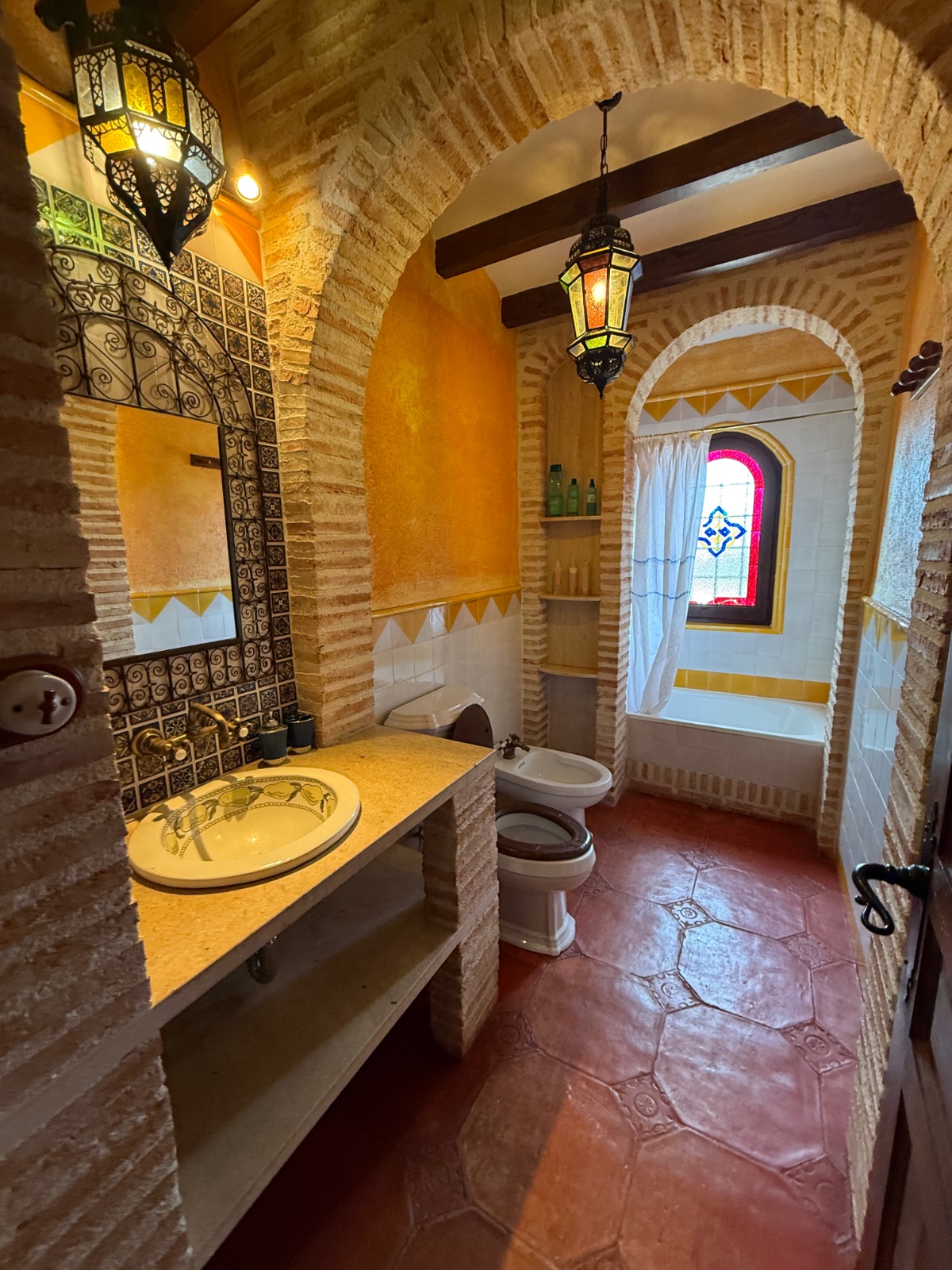 Un jacussi bajo las estrellas, un lavadero y una despensa que huelen a vida sencilla. Y como joya escondida, una sala de estilo árabe, pensada para saborear el té y dejar que el tiempo se detenga.