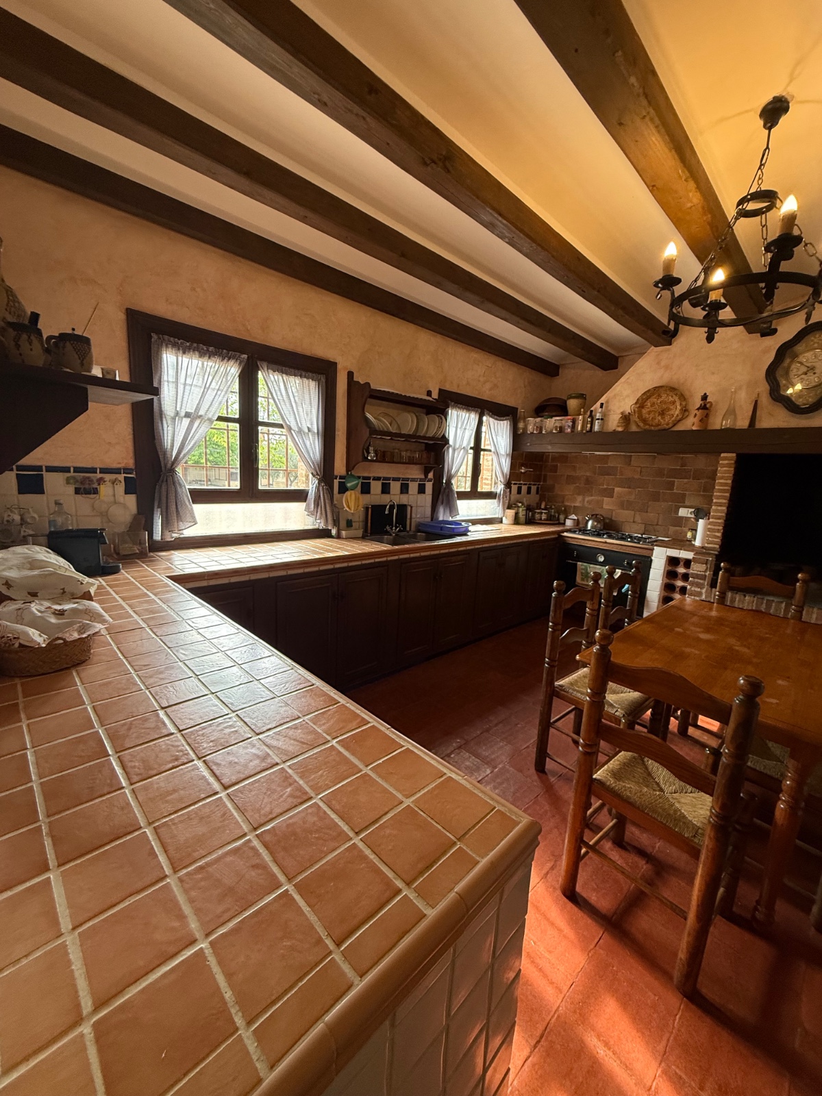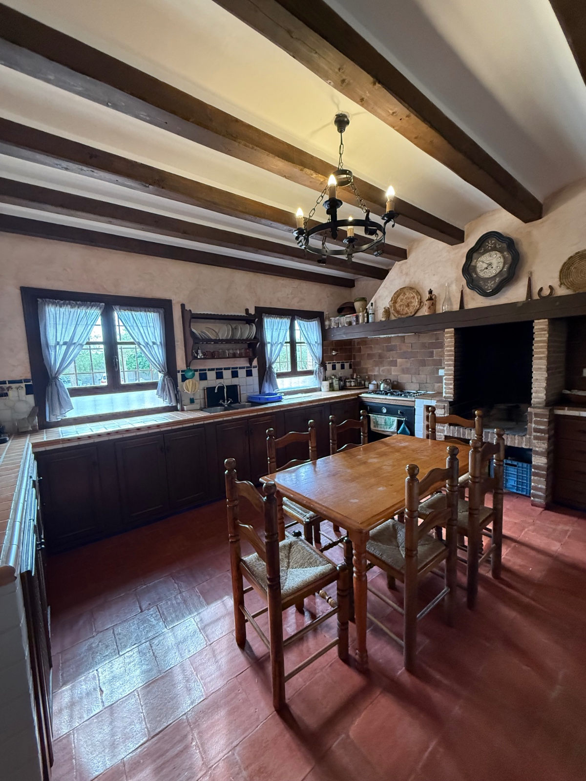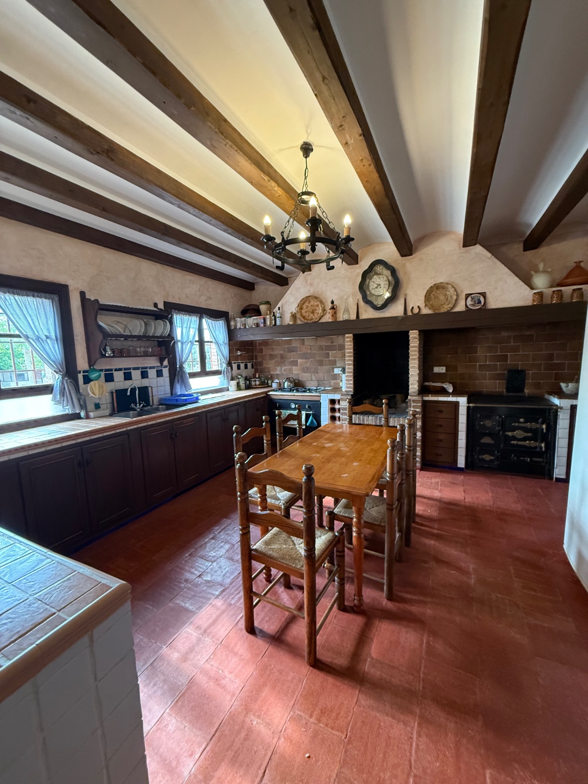 Cinco habitaciones donde el descanso se vuelve profundo, tres baños que invitan a la calma, y una cocina amplia con horno de leña donde cada comida puede ser un recuerdo inolvidable. El murmullo de una chimenea encendida acompaña los días de invierno, mientras en el exterior, la barbacoa y los aromas del campo celebran las tardes de verano.