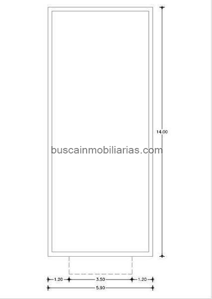 Se vende solar urbano, rectángulo regular con casi 6 m de fachada y 14 m. de fondo. Resulta un plano de unos 82 m2, pudiendo construirse planta baja + 4 alturas.