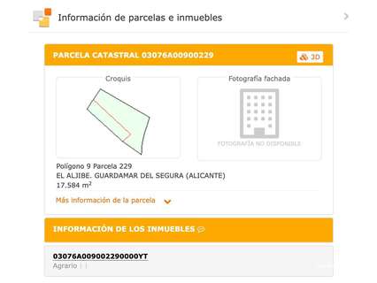 Parcela rústica en El Aljibe, Guardamar del Segura (Alicante) con 17.584 m² según Catastro (Polígono 9, Parcela 229).