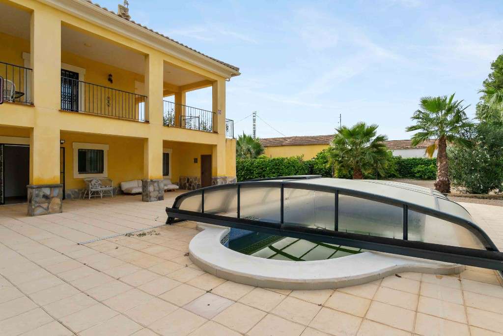 SE VENDE VILLA DE LUJO CON PISCINA EN ALMORADI, COSTA BLANCAEsta amplia villa de lujo recién reformada de estilo tradicional mediterráneo situada en una gran parcela de 2600 m2, tiene unas vistas espectaculares del campo de Almoradi, Alicante. La casa principal tiene 6 dormitorios y 5 baños, terraza abierta, solárium privado con magníficas vistas despejadas, cocina totalmente equipada y, también hay una cochera, garaje y trastero para almacenamiento. En el exterior podrá disfrutar de una gran piscina privada y zona de barbacoa. Se ha instalado calefacción central y se ha hecho una cocina totalmente nueva. La zona de jardín tiene un excelente exterior, tiene piscina y fabulosos jardines. Disfrute de día o de noche del ambiente completo con zona de barbacoa. Se accede a la propiedad por puertas eléctricas y tiene almacenamiento adicional con un garaje y cuarto de servicio. Nueva maquinaria de aire acondicionado frío y caliente. Conexión municipal legal de agua y luz.Almoradi es un municipio de la Comunidad Valenciana, España. Está situado en la provincia de Alicante y en la comarca de la Vega Baja del Segura. Con su fácil acceso a la A37 que conecta Alicante con Cartagena y su proximidad a todos los pueblos costeros, Almoradi se ha convertido en un lugar de residencia perfecto tanto para disfrutar de sus vacaciones como para vivir en él. Distancia a la playa 10 km, distancia al aeropuerto 40 km, distancia al golf 3 km.