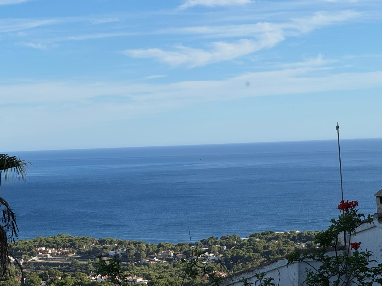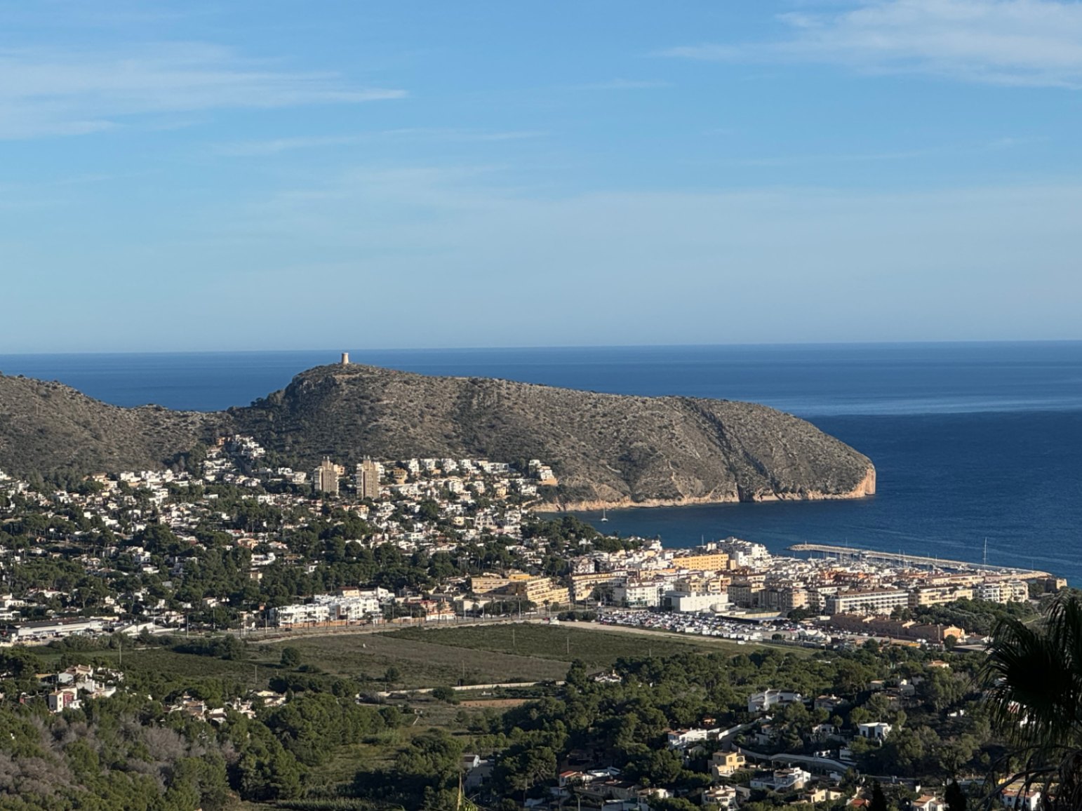 Benimeit, Moraira, gran parcela llana de 1.300 m2, con magníficas vistas al mar y panorámicas, en un sitio tranquilo, a 4 km de playas, calas y del centro de Moraira. Da a 2 calles, por la calle de arriba está urbanizado, con aceras, farolas, agua, líneas telefónicas subterráneas, la luz está a pie de parcela por la calle de arriba. Libre elección de constructor.
