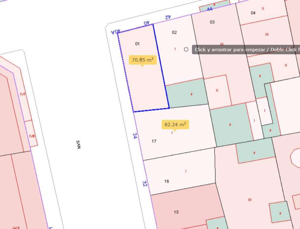 Fachada total: 25,15 m Superficie total: 153,09 m² Profundidades variables: 4,1 m en la zona de la parcela 17. 14,2 m en la zona de la parcela 01.