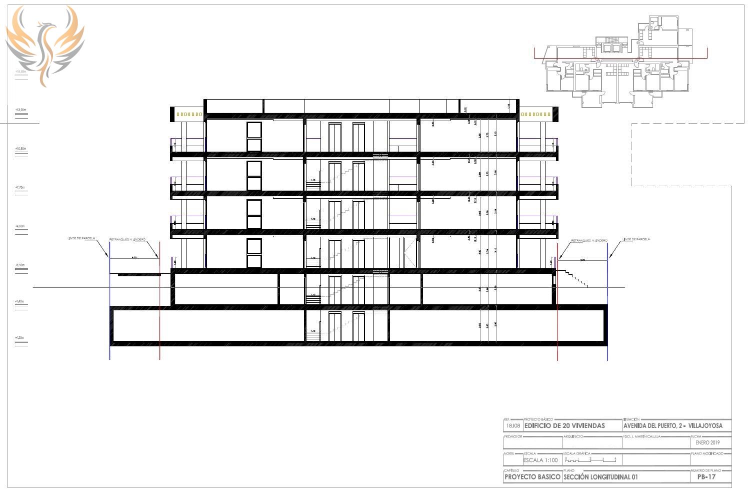 Edificación para 20 viviendas con una superficie construida de vivienda plurifamiliar de 1.446,53 m² y una superficie de sótano y semisótano destinado a trasteros y garajes de 2.127,45 m² de superficie.