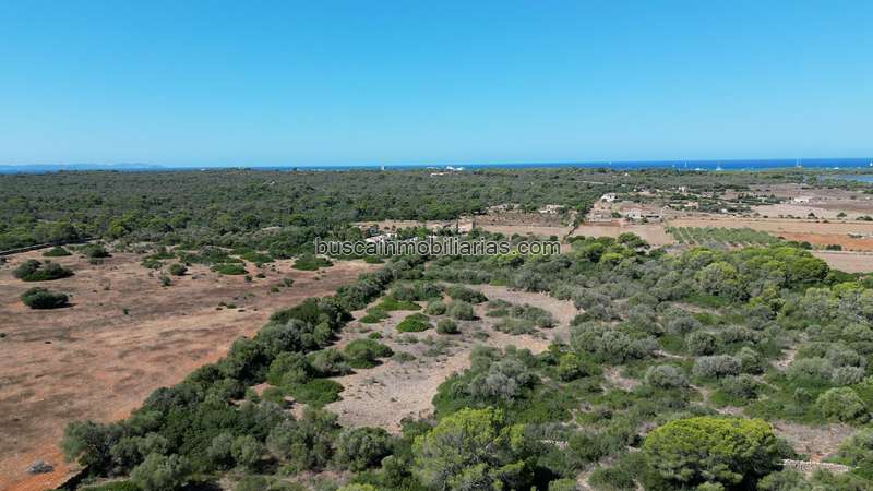 Este terreno de aproximadamente 16.000 m2 está situado en una zona elevada y muy íntima, apenas a 500 metros de las salinas d’Es Trenc, una zona privilegiada del sureste de la isla de Mallorca, incluida en un parque natural.