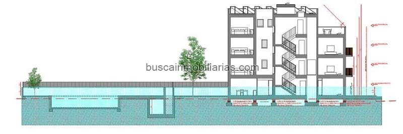 * En planta primera y segunda, se proyectan cuatro viviendas (dos por planta), cada una con dos dormitorios, dos baños y una zona de estar-comedor-cocina.