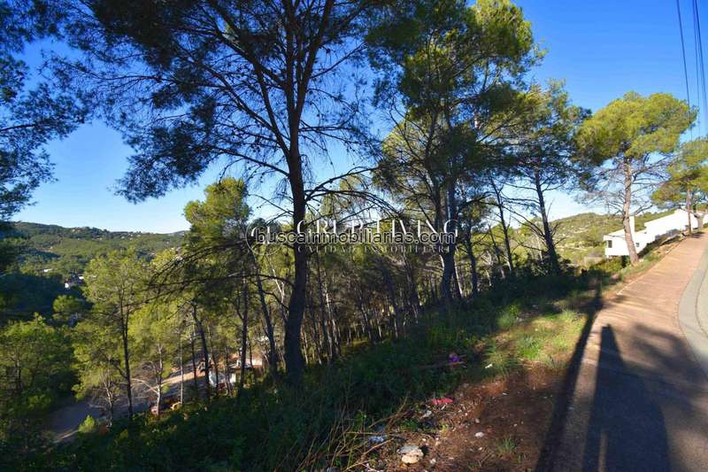 Amplio terreno urbano de 1.320 metros cuadrados con 21 metros de fachada a la calle Pirineus, cerca de la entrada a la urbanización. Tiene pendiente descendente desde la calle con muy buenas vistas y orientación suroeste para aprovechar el sol de tarde y las bonitas puestas de sol en invierno.