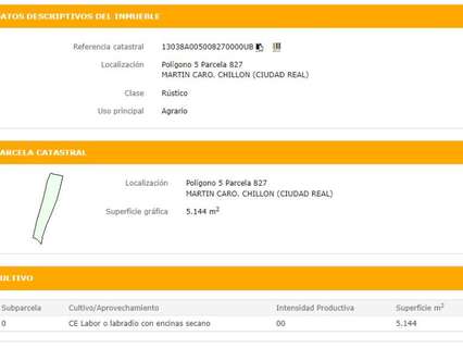 REFERENCIA: 67475 Parc de 0.5 ha aproximadamente situada en MARTIN CARO. Este terreno no cuenta con acceso directo al camino y no dispone de ningún tipo de construcción. Si desea ampliar información en ADAIX ALMADÉN, Plaza de Jesús, 5.