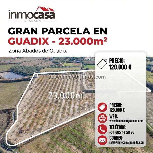 Presentamos esta fantástica finca rústica de 23.284 m2 situada en el término municipal de Guadix (Granada), a menos de 5 minutos del área de servicio Abades Guadix, con muy buena comunicación.