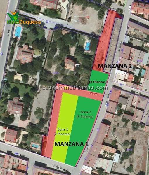 - La MANZANA 1: Tiene una superficie de 2.326,08 m2. Se prevé una zona con viviendas unifamiliares con una altura de dos plantas (B+1) con altura máxima de 7 metros. Y otra zona de 3 plantas (B+2) con una altura máxima de 10 metros, mas un ático por encima de la altura máxima.