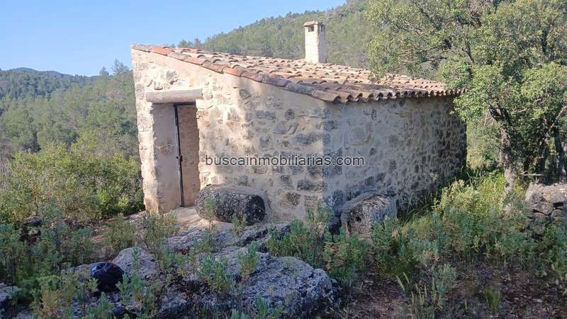 Tiene una caseta de piedra con chimenea restaurada.