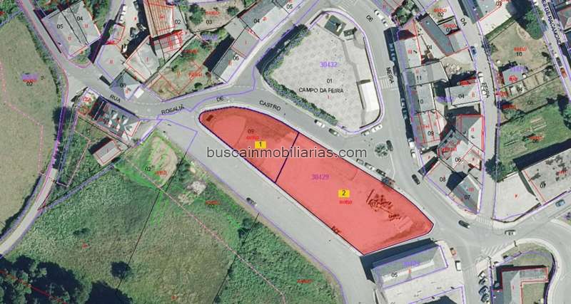 Suelo urbano de 2.548 m2 en Lugo. La parcela consta de 2 referencias catastrales con 761 m2 y 1787 m2, que hacen un total de 2548 m2. Con edificabilidad estimada de 6.330 m2 y un número estimado de 64 unidades a edificar