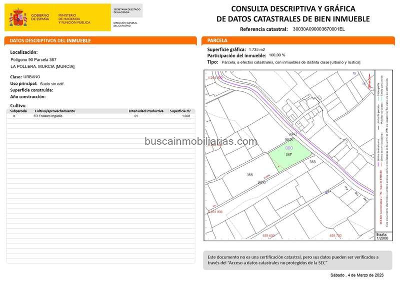 Parcela de 1735 m2 urbana. Está ubicada en la ermita de Burgos, Nonduermas.