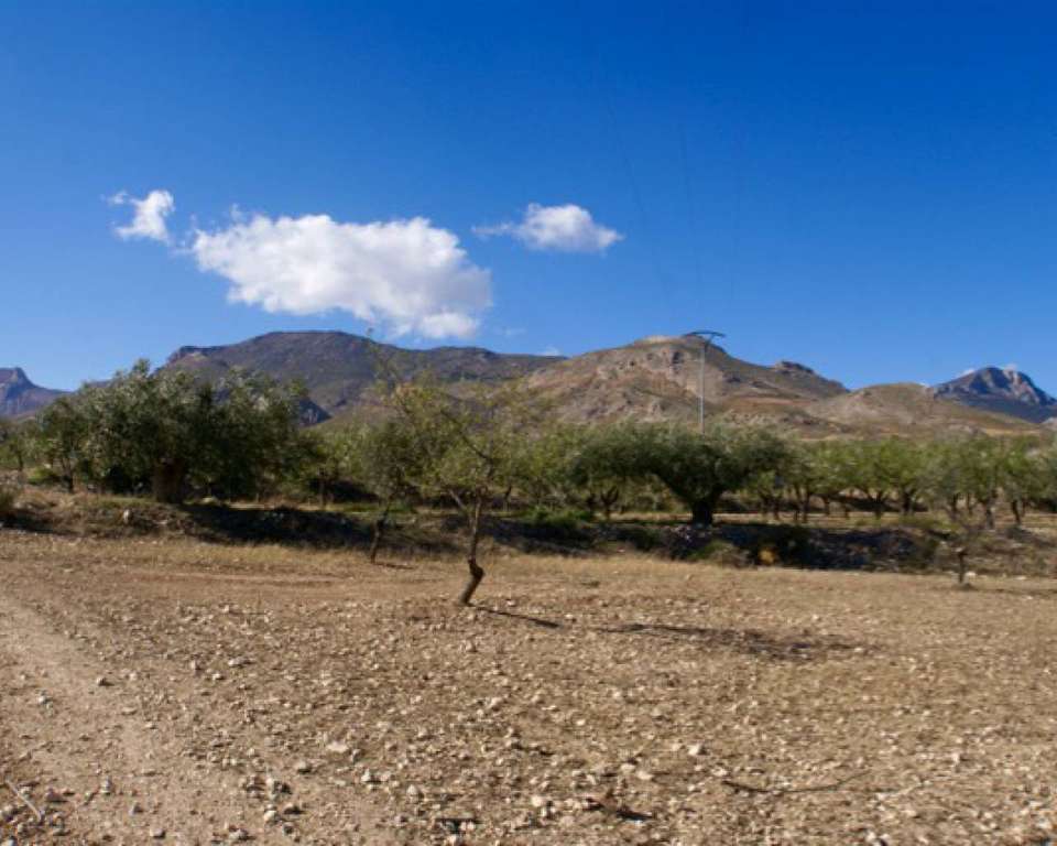 El terreno se encuentra situado en los límites de Murcia y Almería. Hay un total de 27.000 metros cuadrados de terreno que en este momento tiene algunos almendros, uvas y olivos en crecimiento. La tierra tiene las más fantásticas vistas del valle y conduce hasta el pequeño arroyo que corre en el fondo de la parcela.