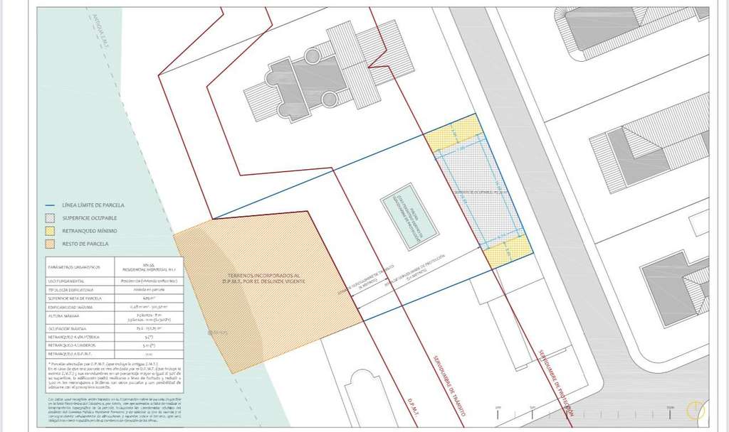La Manga del Mar Menor parcela de 629 m2 frente al mar con playa propia para poder constuir una vivienda unifamiliar con una vivienda de 2 plantas de 157 m2.