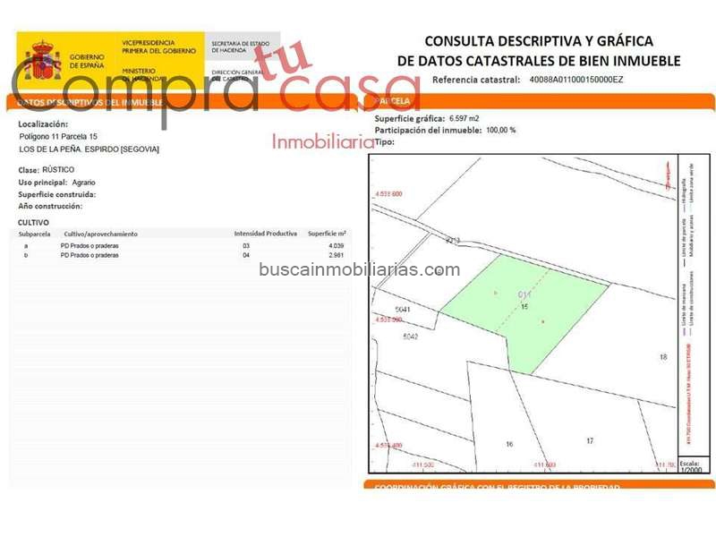 Oportunidad, gran finca a un estupendo precio. Expediente: 4959 Compratucasa Inmobiliaria te ofrece en venta 20400 metros de superficie rústica en la localidad de Espirdo- término de Tizneros. Situada a unos 300 metros del pueblo, con acceso por camino al cual puedes acceder con vehículo. Es una finca ideal para uso agrario o bien como zona de ocio ya que con autorización previa del ayuntamiento existe la posibilidad de instalar una nave o caseta.
