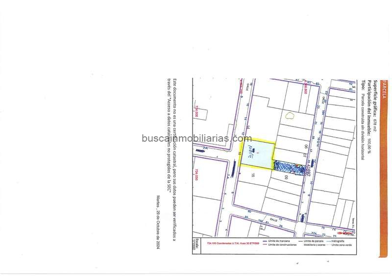 El terreno tiene una fachada de 19,50 m. y una superficie, segun catastro, de 464 m2.