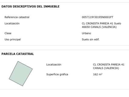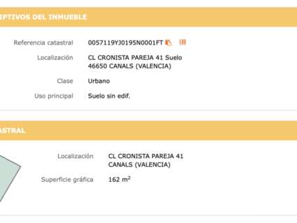 REFERENCIA: 655F3 Parcela urbana en Canals. Ubicada en una de las zonas de expansión, se sitúan esta fantástica oportunidad. Una de las pocas oportunidades que quedan a la venta, una parcela de aproximadamente 162m2 que da a dos calles. Maravillosa ocasión para crear tu propia casa y convertir tus sueños en realidad. La zona está completamente urbanizada por lo que no hay pagos pendientes por urbanización.SE VENDE COMPLETAMENTE LIBRE DE CARGAS. Recuerda, aprovecha la oportunidad y pregunta en ADAIX CANALS.