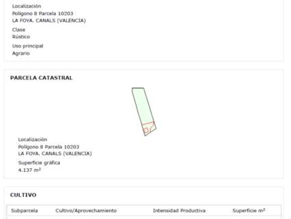 REFERENCIA: 68A18 Terreno rústico de 4.137 m² en La Foya LAlcúdia de Crespins con acceso asfaltado hasta la propia parcela y salida directa a la carretera AlcúdiaAnnaEnguera, finca llana y soleada rodeada de naranjos y olivares con derecho a riego, mediante conexión existente por goma próxima, atravesando el camino. perfecta para huerto ecológico o cultivo personal amplitud suficiente para instalar una mobilehome, posibilidad caseta de aperos, zona barbacoa o área de picnic a tan solo 10 min de la Canal de Navarrés, comarca famosa por sus piscinas naturales, destacando el Gorgo de la Escalera de Anna, ideal para refrescarse tras una jornada en el campo ocasión exclusiva de la Inmobiliaria ADAIX Canals para invertir, producir y disfrutar de la naturaleza. No dejes pasar esta magnífica oportunidad y ven a visitarlo sin ningún compromiso a la INMOBILIARIA ADAIX CANALS, donde te atenderemos como siempre.