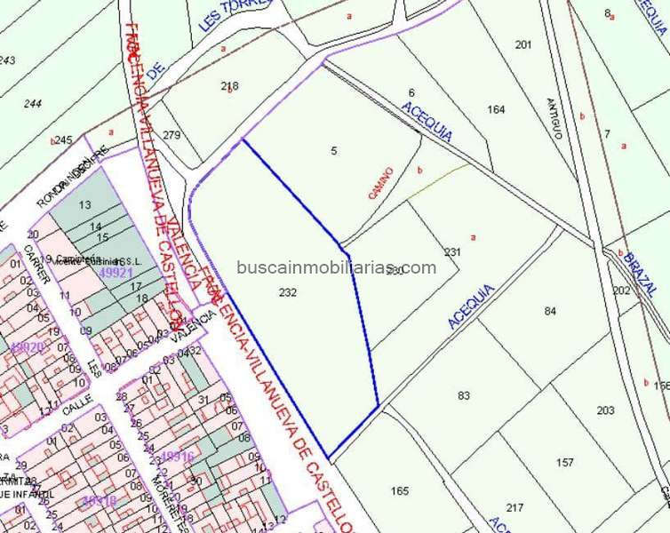 Terreno urbano situado en la Calle Sendas en el municipio de Villanueva de Castellón provincia de Valencia.La calle sendas correspondería al Polígono 18 Parcela 232 hoy urbano.Corresponde con la referencia catastral 46259A018002320000FE