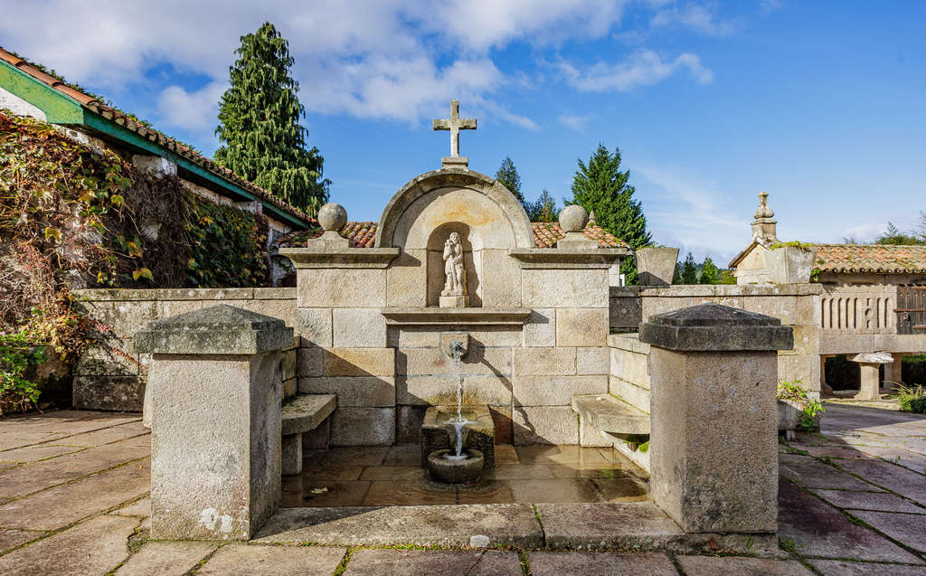 La antigua cocina conserva una impresionante lareira de piedra con columnas de cantería. El conjunto se completa con una capilla consagrada de grandes dimensiones con retablo de madera tallada, un magnífico hórreo con galería de arcos y una bodega tradicional con lagar en perfecto estado.