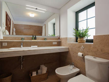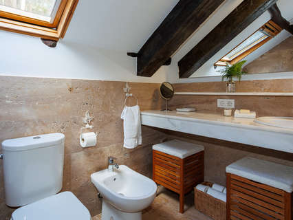 La casa de invitados, situada en la parte trasera, alberga una habitación doble y un cuarto de baño, manteniendo la misma estética de piedra y acabados de calidad.