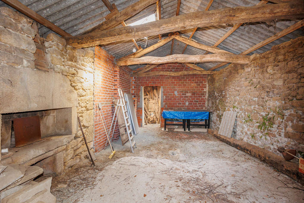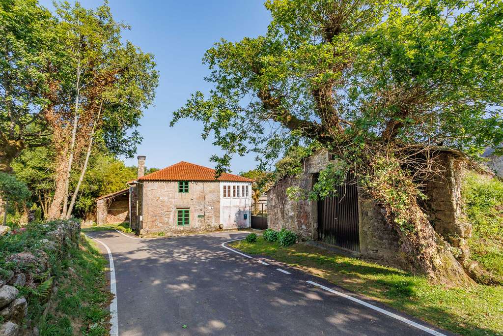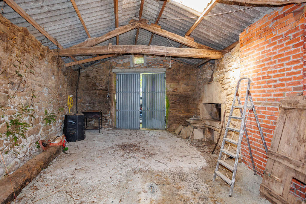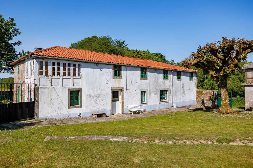 La casa principal de piedra tradicional gallega tiene 613 m² construidos distribuidos en dos plantas. La planta baja incluye una impresionante cocina con dos grandes alacenas empotradas en la piedra, amplio salón-comedor con gran chimenea, habitación, cuarto de baño, bodega y despensa.