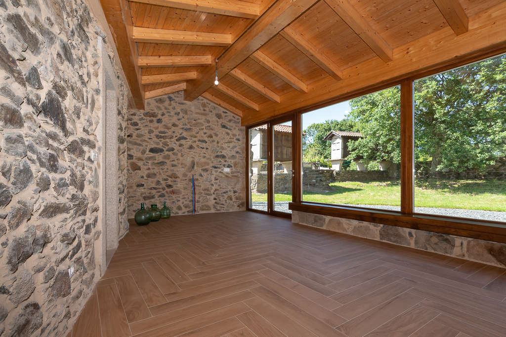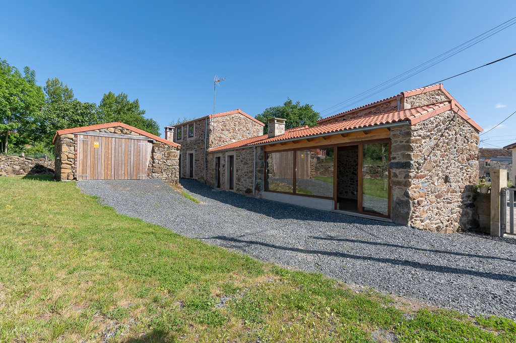 La zona de jardín incluye un hermoso hórreo tradicional gallego de cantería y madera, un gran alpendre de piedra para guardar vehículos y aperos, un horno de piedra y un pozo de agua.