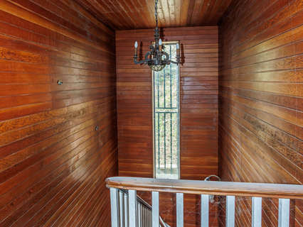 La primera planta cuenta con cinco habitaciones luminosas con suelos de tarima, techos de madera vista y armarios empotrados, además de un cuarto de baño completo con bañera. El espacio bajo cubierta es diáfano y accesible mediante escaleras plegables.