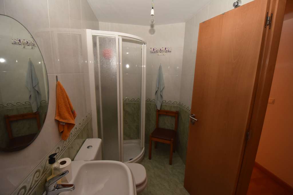 Distribuida en: salón-cocina, dos dormitorios (uno está actualmente unido al salón), dos baños, despensa-tendedero.