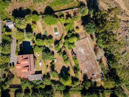 Los exteriores incluyen piscina, cancha de tenis, zona de barbacoa cubierta con gran parrilla de hierro forjado, trastero y leñera externa. Los jardines albergan árboles frutales como naranjos, perales, nogales, kakis, aguacates, pesegueiros y cerezos, junto con plantas decorativas como hortensias, rosales, camelias, rododendros y magnolios.