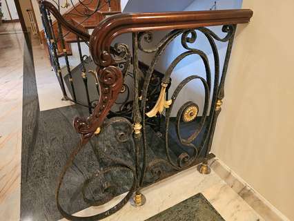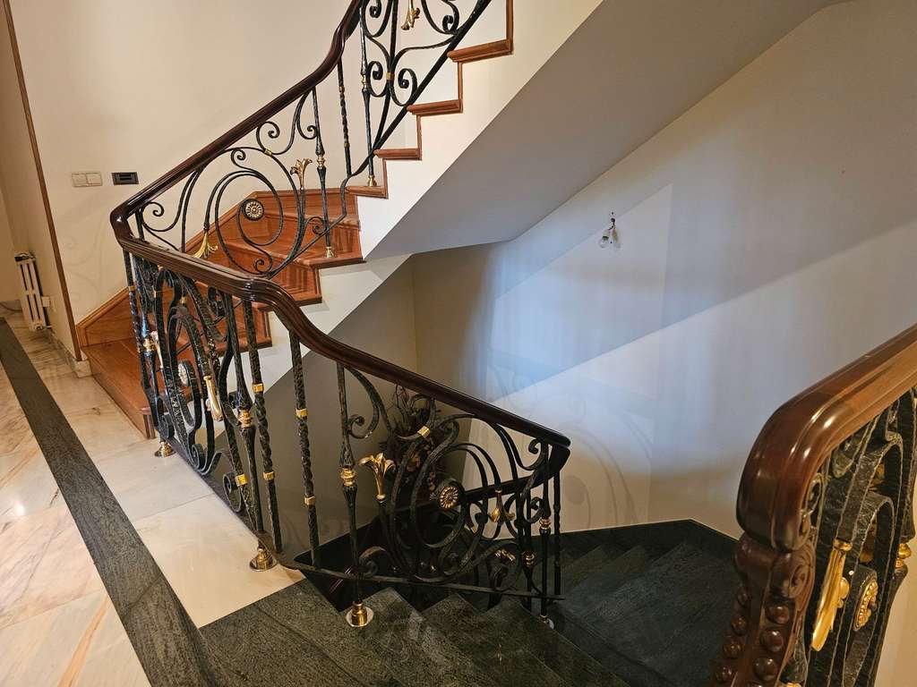 Los acabados de alta gama, como los suelos de mármol rosa y la madera de roble americano, aportan distinción y calidez. La elegante escalera central es el corazón arquitectónico de la vivienda, y los tres salones ofrecen espacios versátiles para entretenimiento y relajación. Seis habitaciones y seis baños distribuidos con maestría garantizan confort y privacidad para toda la familia.