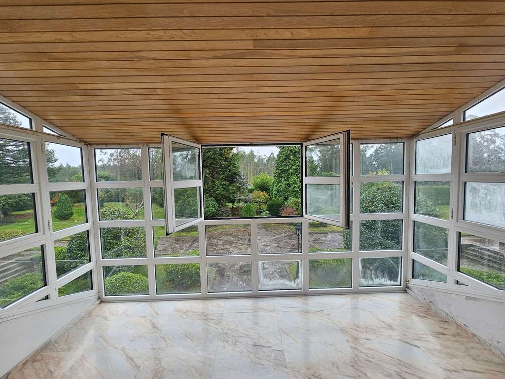 Akivivo presenta una magnífica residencia ubicada en una parcela ajardinada de 5.000 m² en Santa Comba. Con alrededor de 1000 m² construidos, esta propiedad ofrece amplitud y sofisticación en cada detalle, ideal para quienes valoran la tranquilidad sin renunciar a la cercanía de núcleos urbanos importantes: Santiago se encuentra a tan solo media hora y A Coruña a 50 km, ambas con aeropuerto internacional.